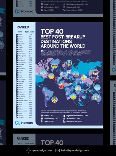 Ranking locations for a travel blog? Include a map infographic to highlight regional trends, national stats, or global comparisons.